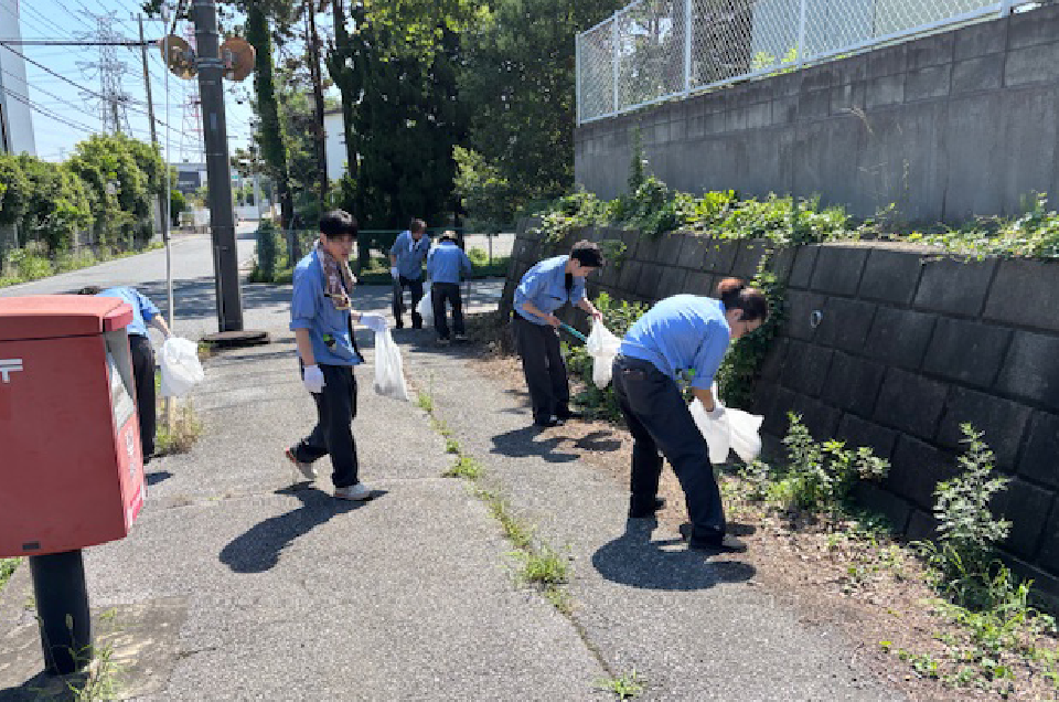 私たちは、CSR地域貢献活動の一環として、地域の清掃活動に積極的に取り組んでおります。年2回の本社周辺を中心としたゴミ拾い等の清掃活動などを通じて、地域社会への貢献、環境の美化、従業員の意識向上を目的とし地域の皆 様に貢献できるよう努めております。